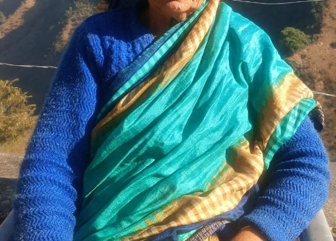 वाइट- बिमला देवी बृद्ध महिला ढिंगनी गॉव